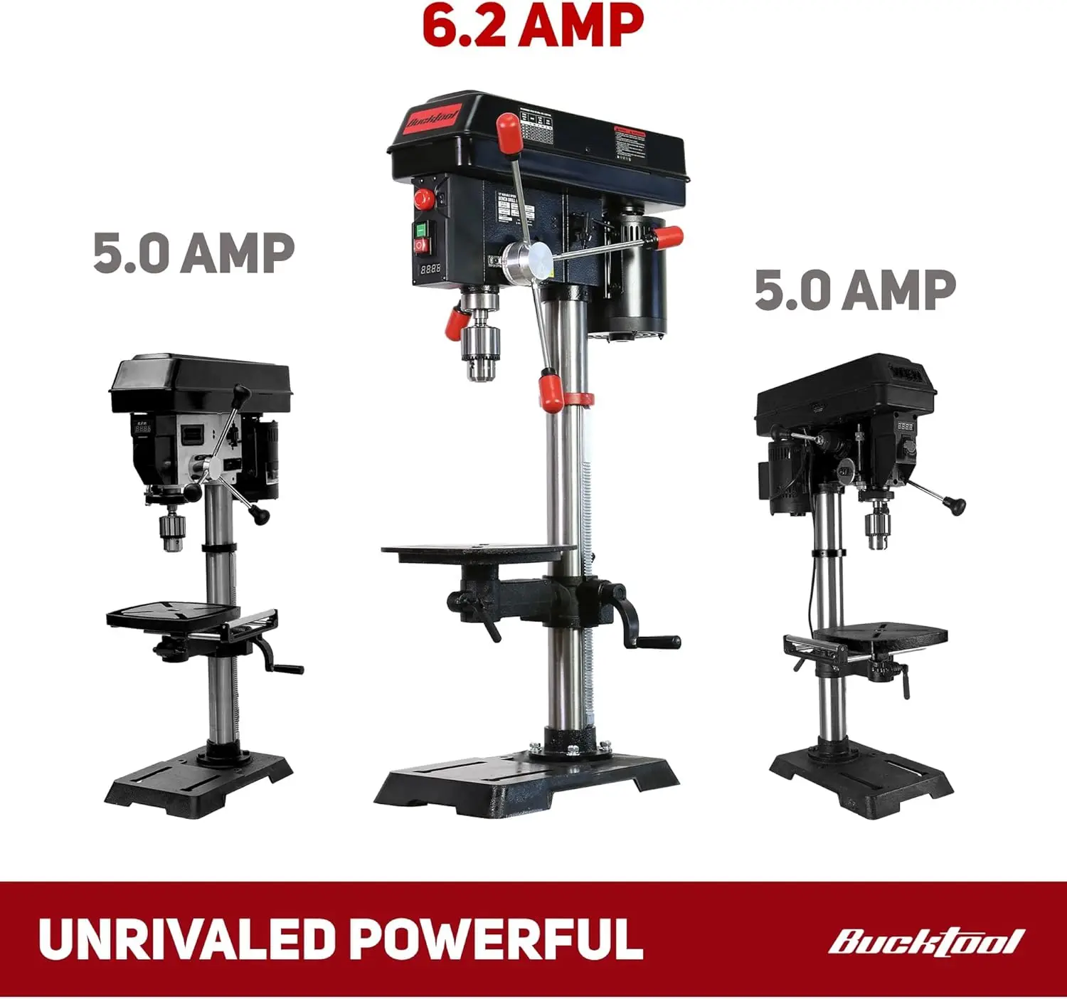 POWERFUL 6.2A MOTOR: Equipped with a powerful 6.2A induction motor (most 12-IN drill press motors are only 5A), provide you constant power to drill through all kinds of material