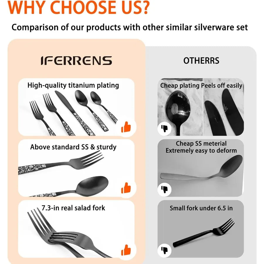 20Piece Matte Black Silverware Set for 4 Skull Rose Cultery Set 18 0 Stain Finish Stainless Steel Gothic Skeleton Pattern Decor