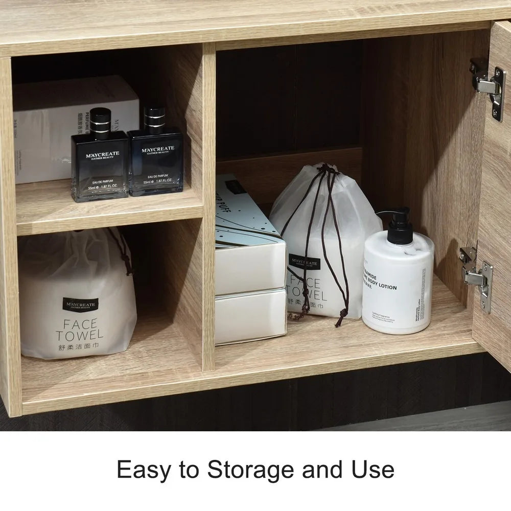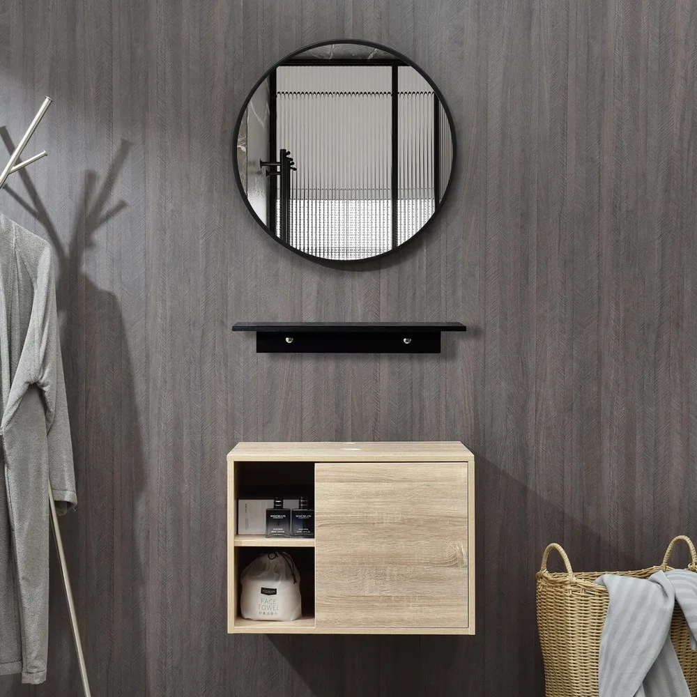 24'' Bathroom Vanity w/ Mirror Wooden Floating Cabinet Storage Vessel Sink Combo