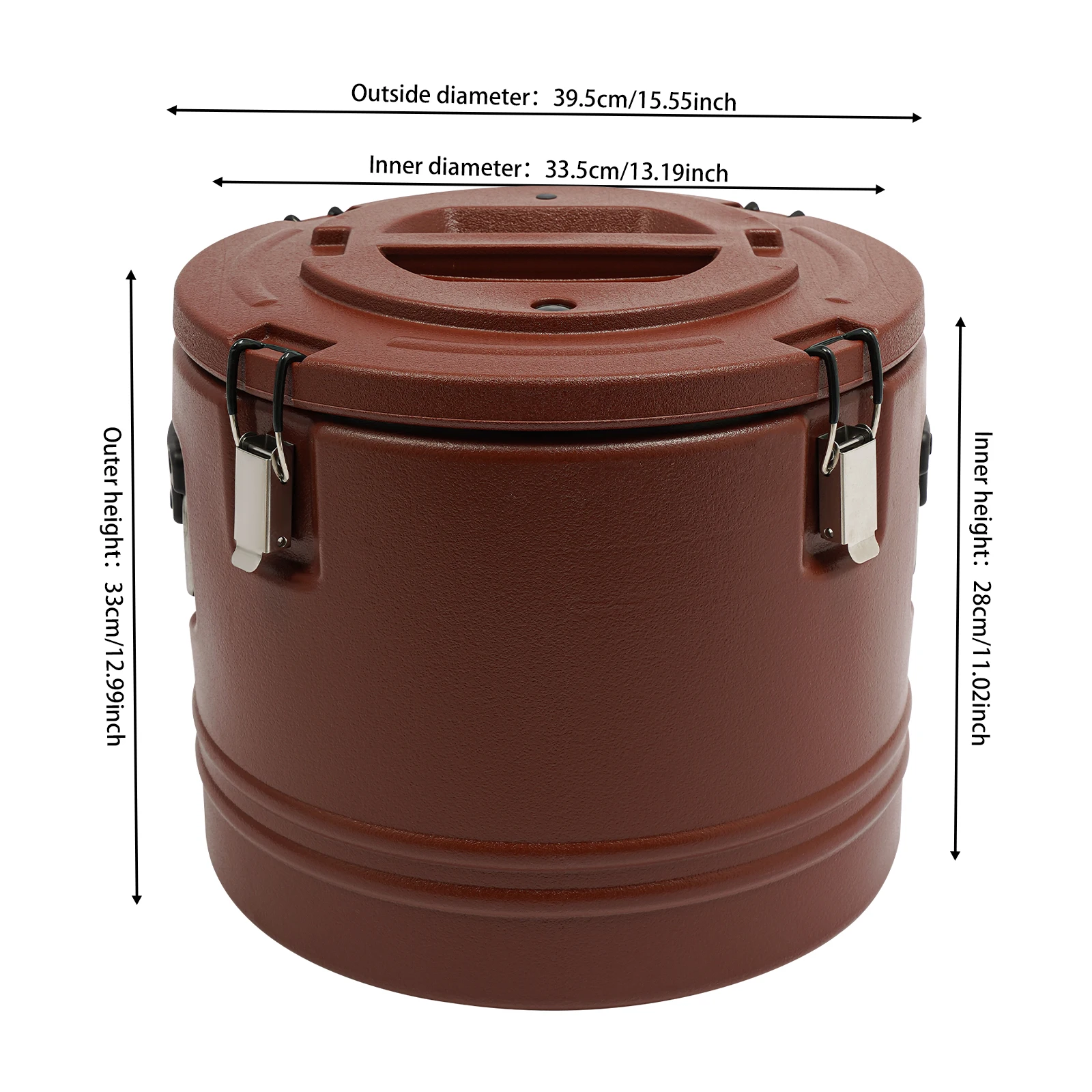 30L Food Warmer, Stainless Steel Food Cooler, Brown Insulated Food Carrier, Commercial Soup Container for Hot or Cold Food