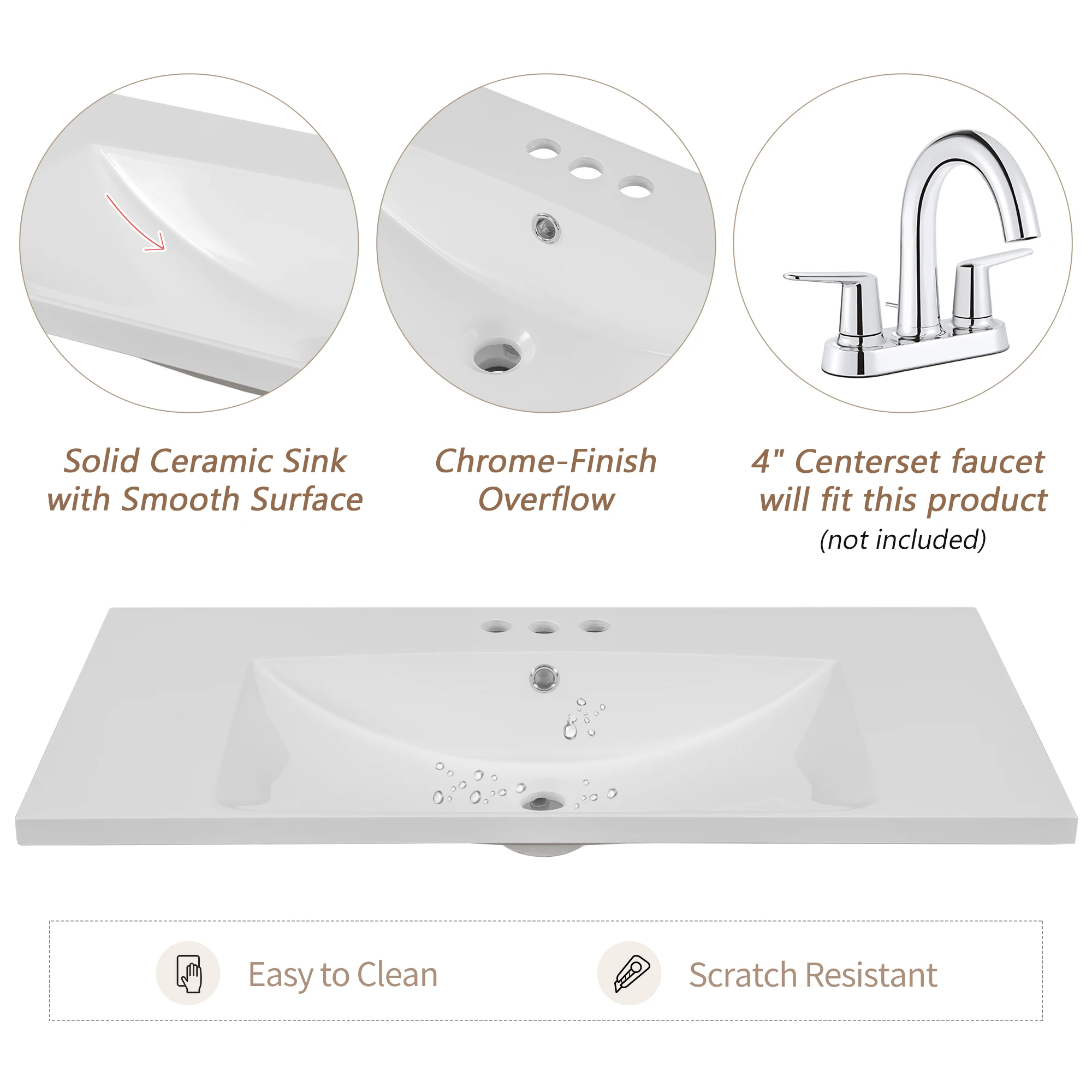 36" Bathroom Vanity with Sink, Free Standing Single Basin Vanity Set with a Soft Closing Door and 3 Drawers, Bathroom Table