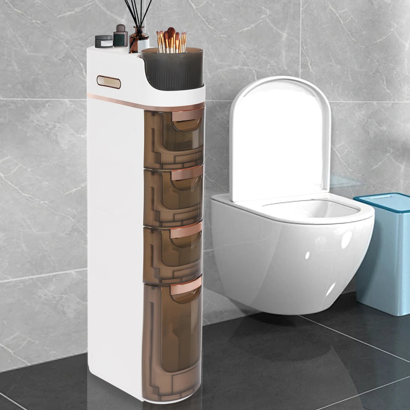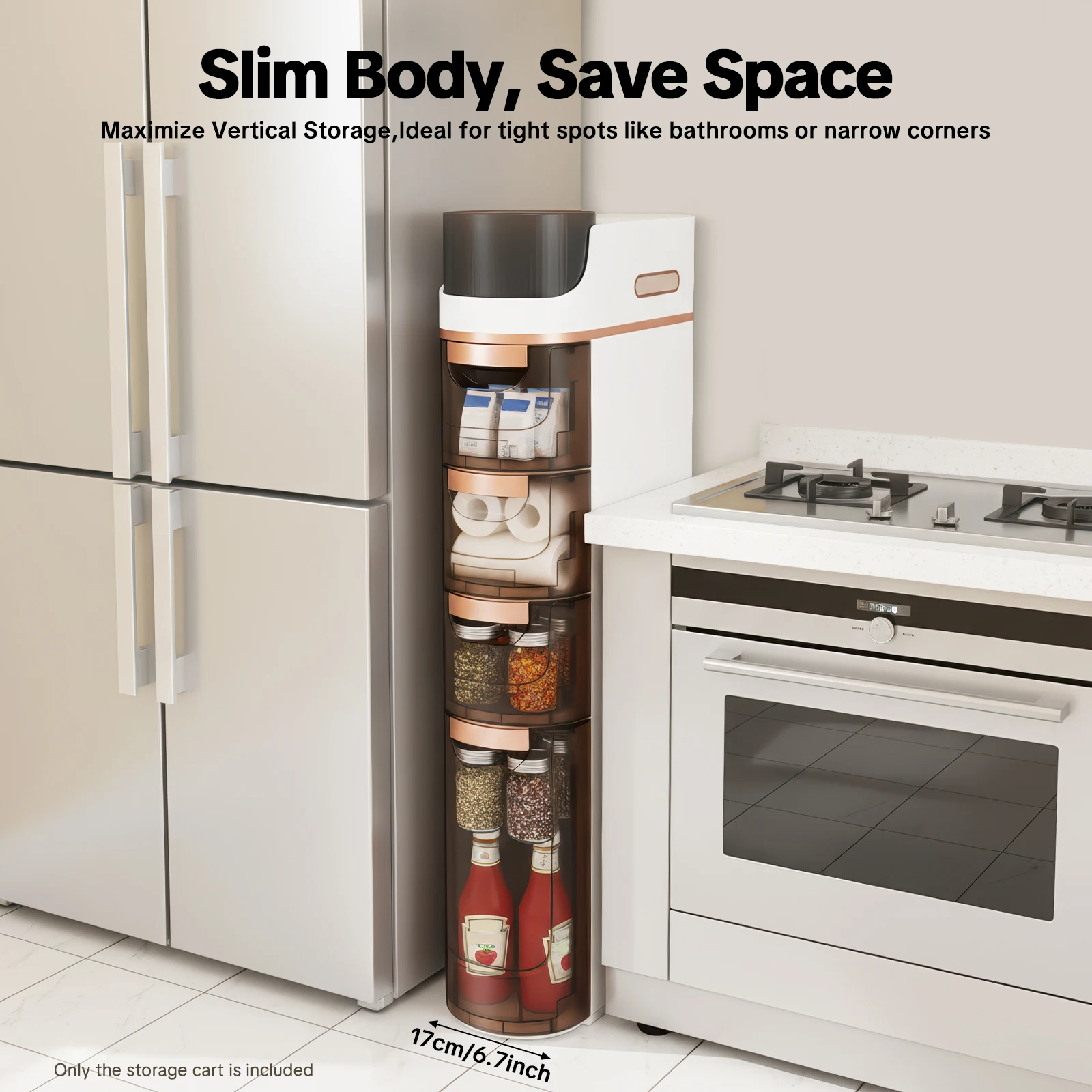 Space-saving: Its small footprint ( 6.7*15.7 inches) and slim 4-tier design make full use of vertical space, making it ideal for bathrooms or other tight spaces without taking up much space.