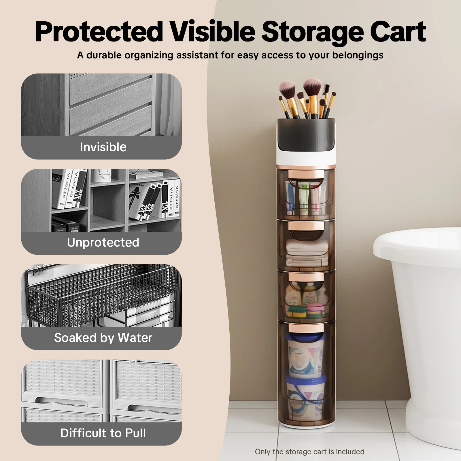 Visible Drawers: The drawer fronts are designed in a highly translucent tawny color, making it easy for you to easily and quickly locate the items you need.