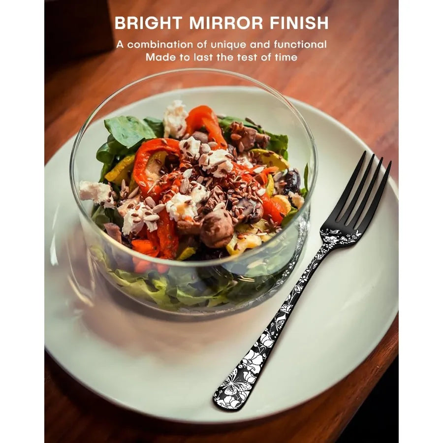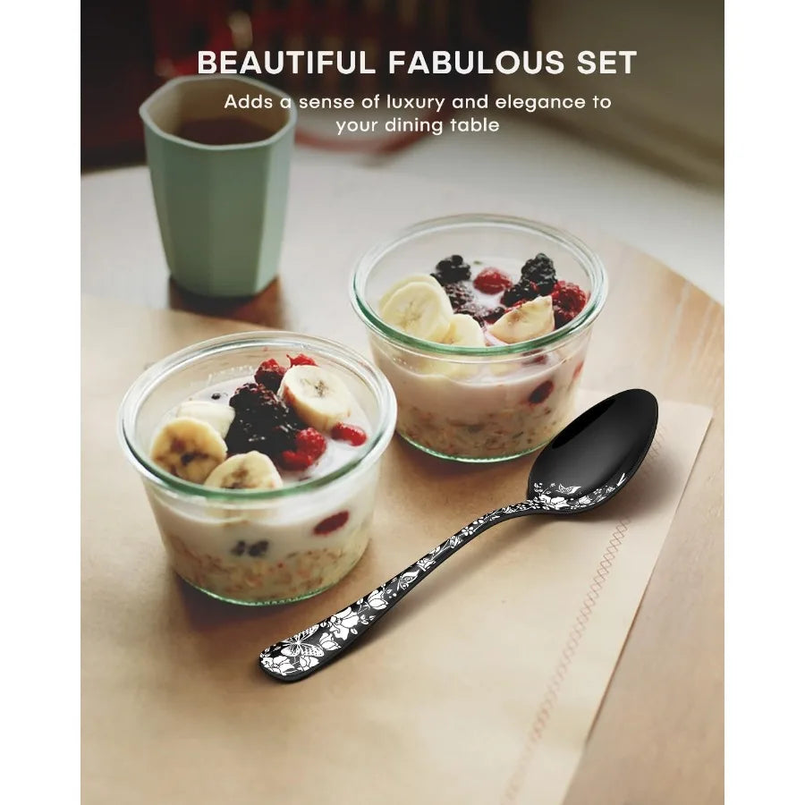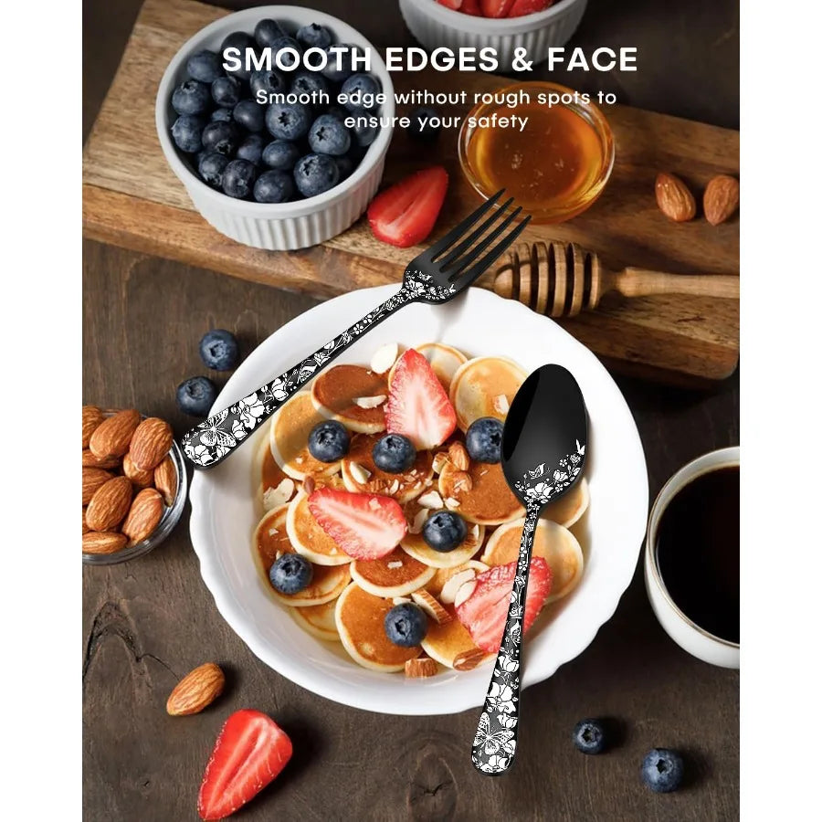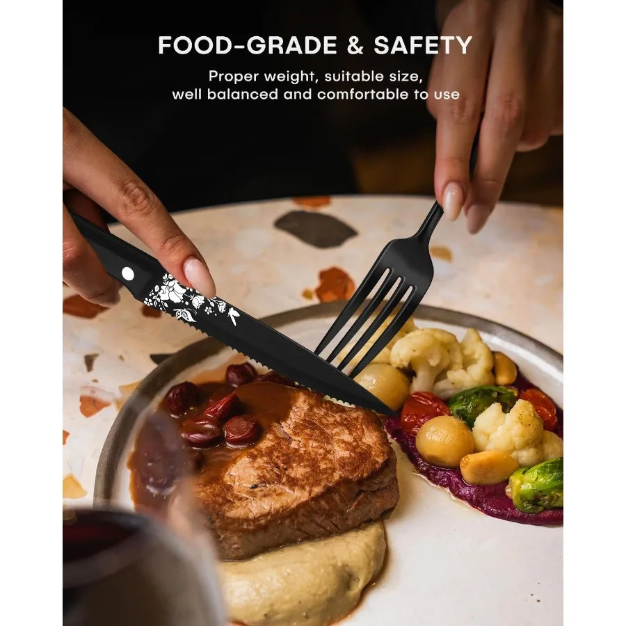 48Piece Black Silverware Set with Steak Knives Stainless Steel Cutlery Flatware Set for 8 Utensil Sets Include Forks Spoons and