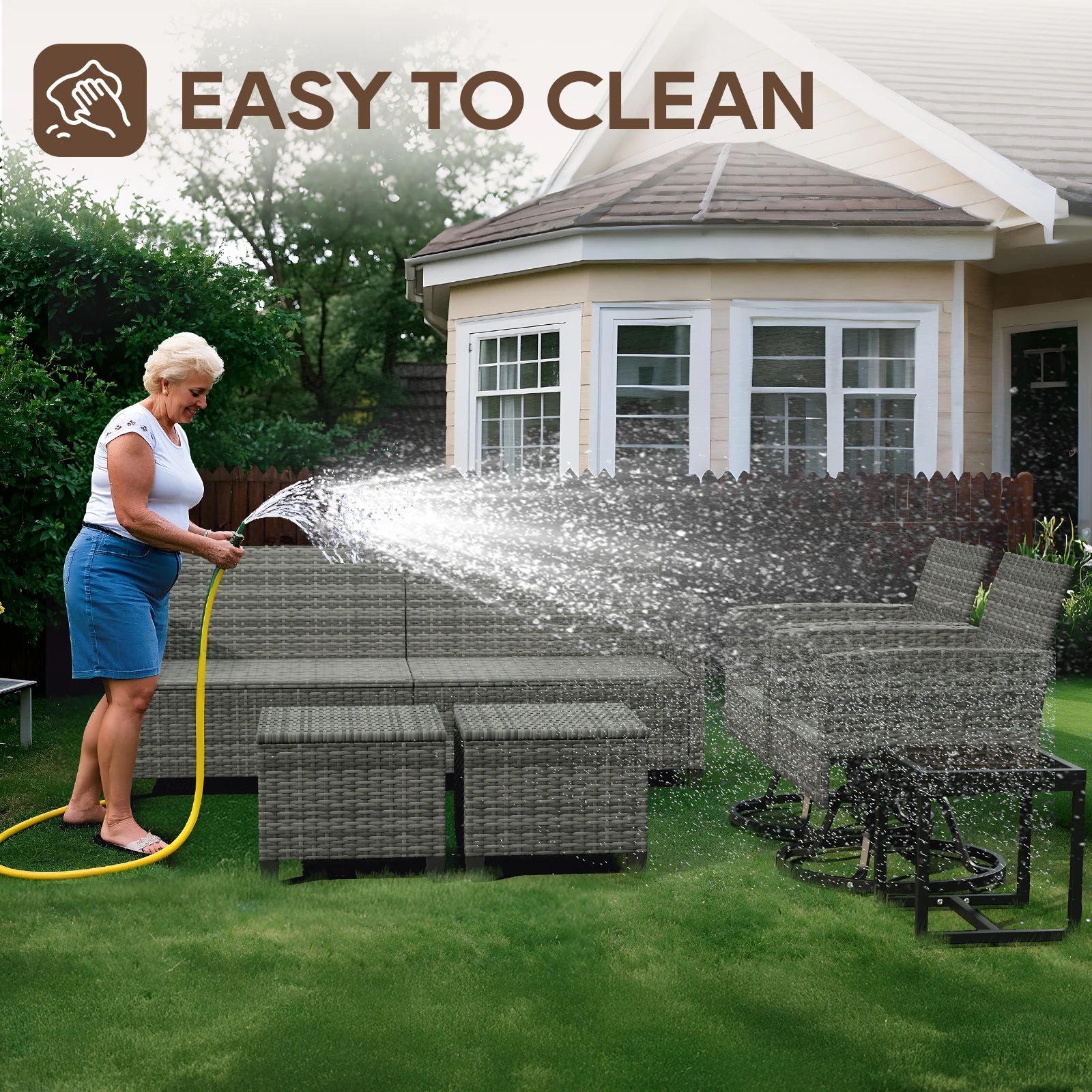 6 Pcs Wicker Patio Furniture Set, Outdoor Swivel Chairs, 3-Seat Sofa, Ottoman & Tempered Glass Side Table, All-Weather Conversat