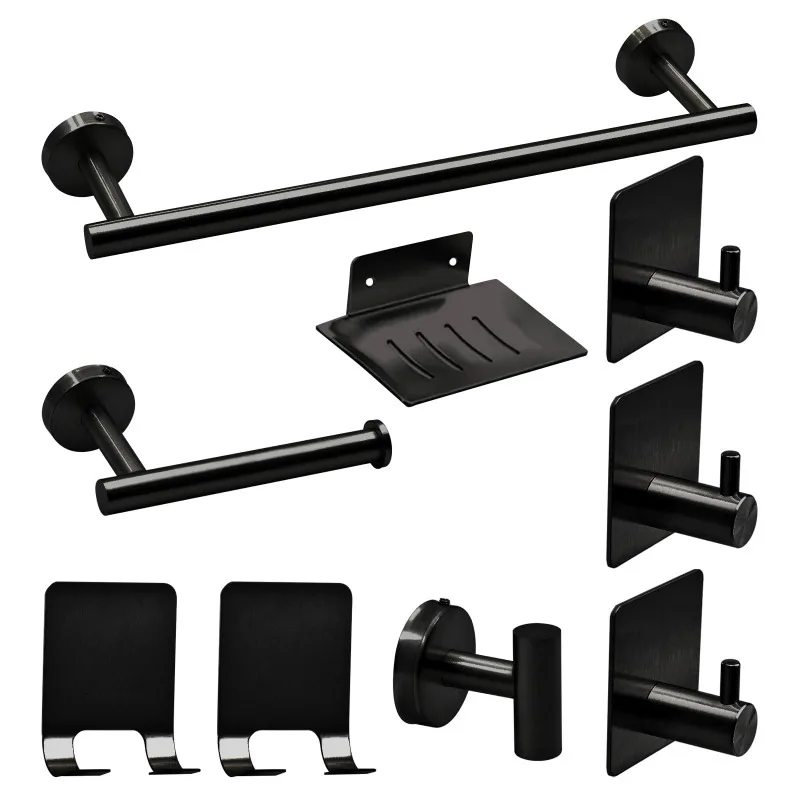 - 7/9 Pcs bathroom towel rack set: Our bathroom hardware set includes: 16" towel bar, toilet paper holder, 6pcs robe hooks, 1 soap holder. In addition to this, you will also receive screws and installation instructions.