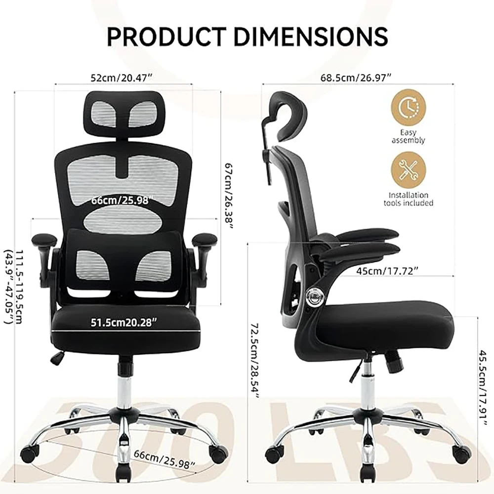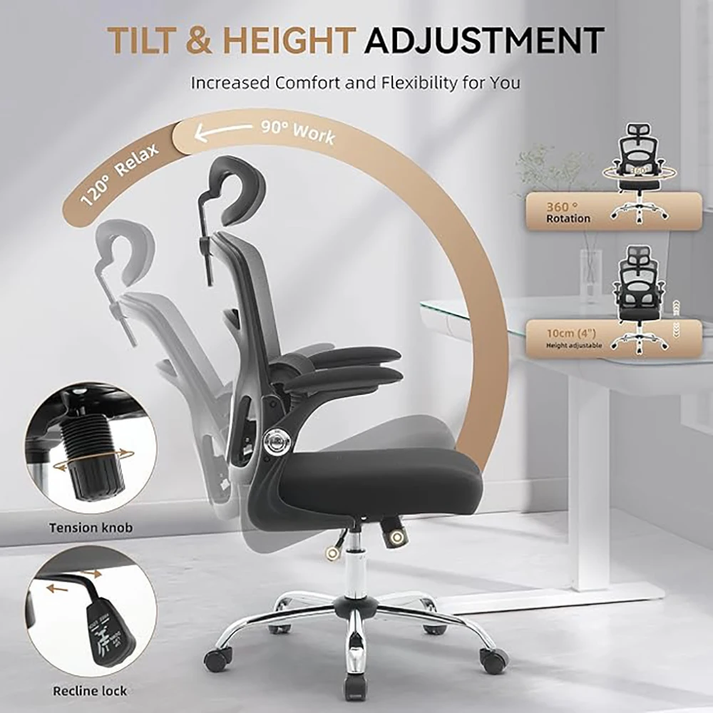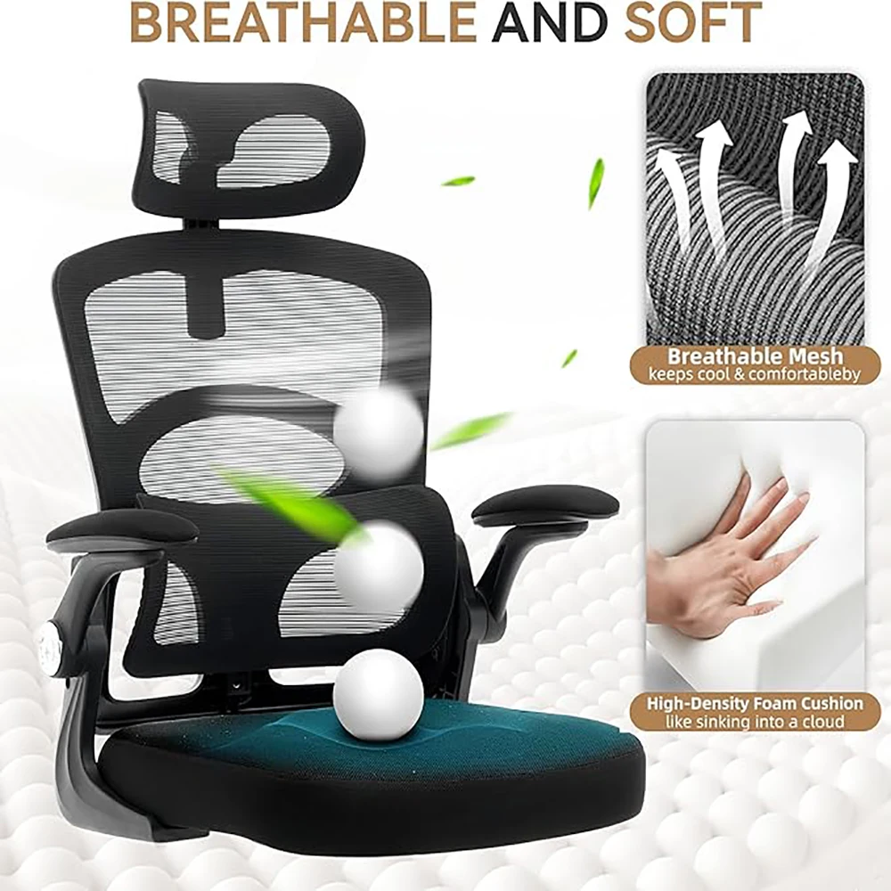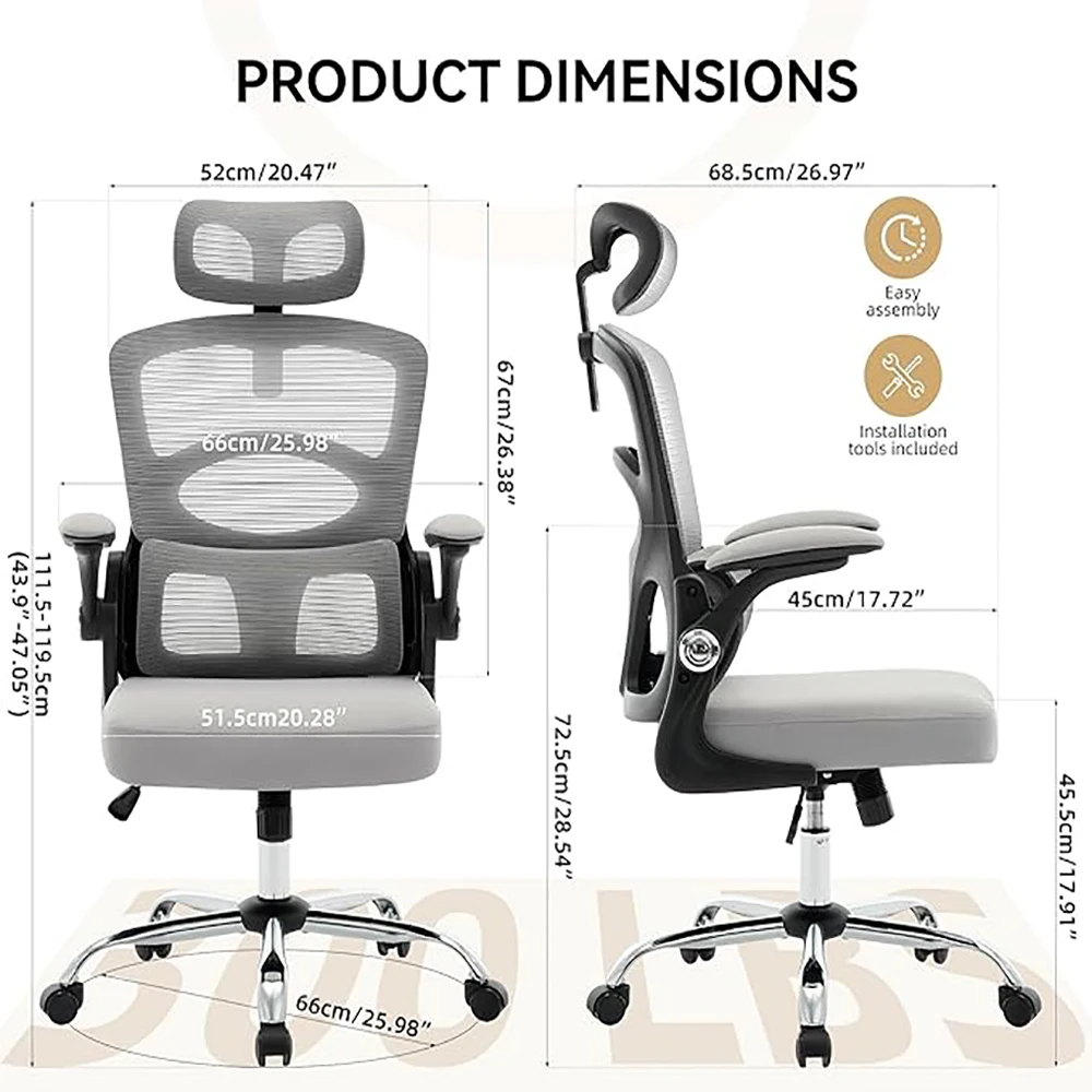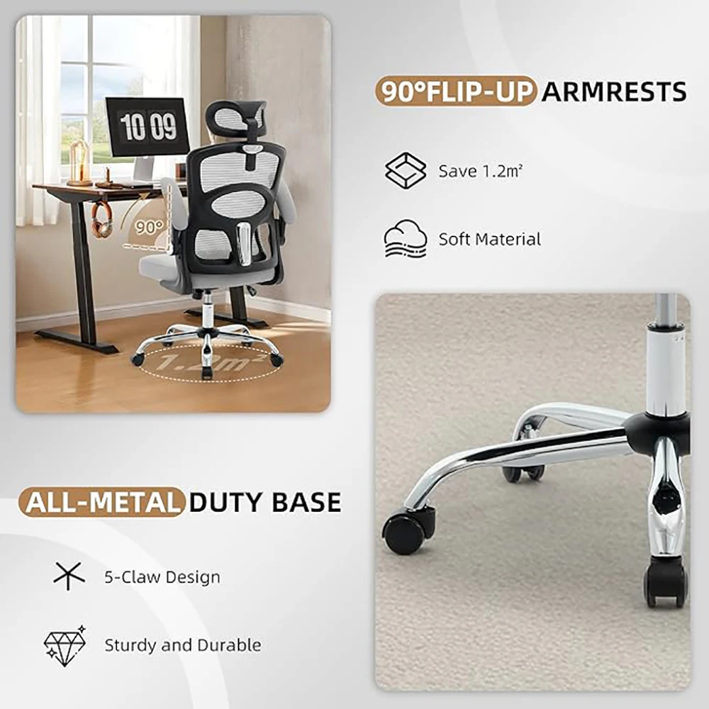 Ergonomic Office Chair with 4-Level Adjustable Lumbar Support, High Back Mesh Desk Chair with Flip-Up Arms, Base Computer Chair