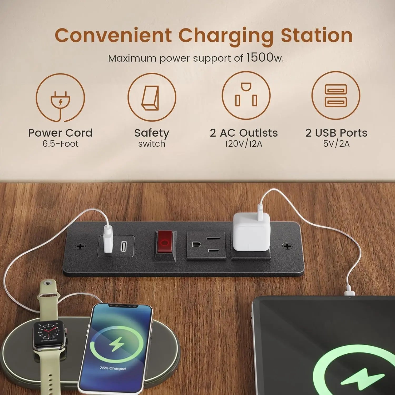【Charging Port】Our charging station includes 2-Outlet & 2 USB Ports to provide power for up to 4 devices simultaneously. Also includes an on-off switch, thanks to the on-off switch, one-button power off to ensure safe electricity use, which strengthens security. Power outlet allows you to charge cell phones, tablets, notebooks, etc.