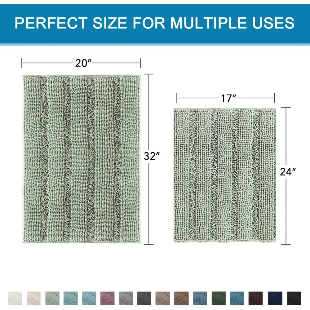 H.VERSAILTEX Sage Bathroom Rugs, Bath Mat Set of 2 Extra Thick Chenille Striped Pattern Shaggy Bath Rugs for Bath Room, Non Skid