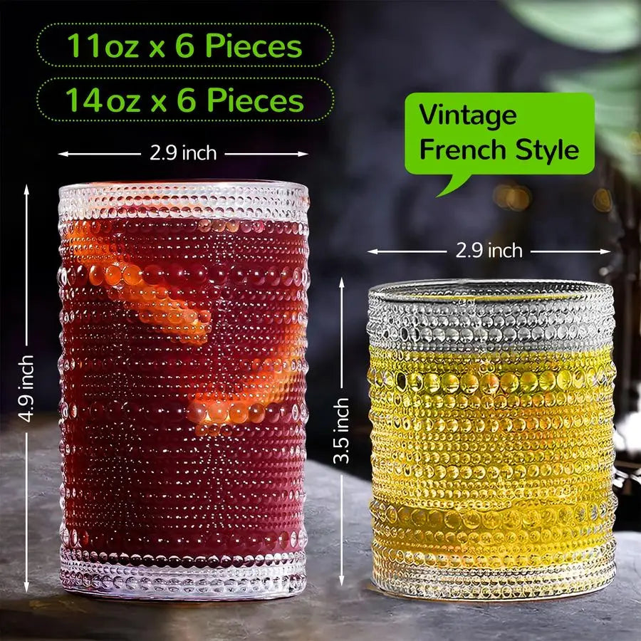 YOU WILL RECEIVE A hobnail drinking glasses set of 12 6 14oz glass cups amp 6 11oz drinking glasses. This 12pcs antique glass cups set is great for the whole family. And theye perfect glasses for outfitting a home bar. If you are looking for some fancy cocktail glasses, then look no further than Old Fashioned Glassware Sets.