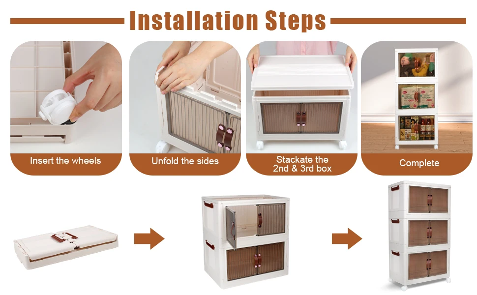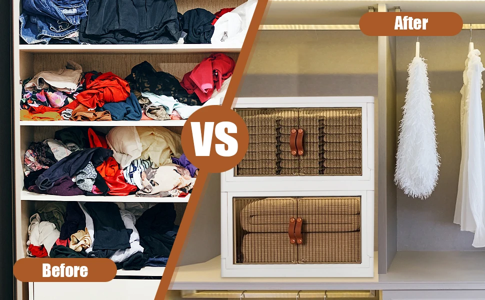 【Two Ways to Open】You can open the top lid or open the front door to take out the items you need. The front door of our collapsible storage box has a strong magnetic design to ensure that it will not open automatically when in motion or at rest.