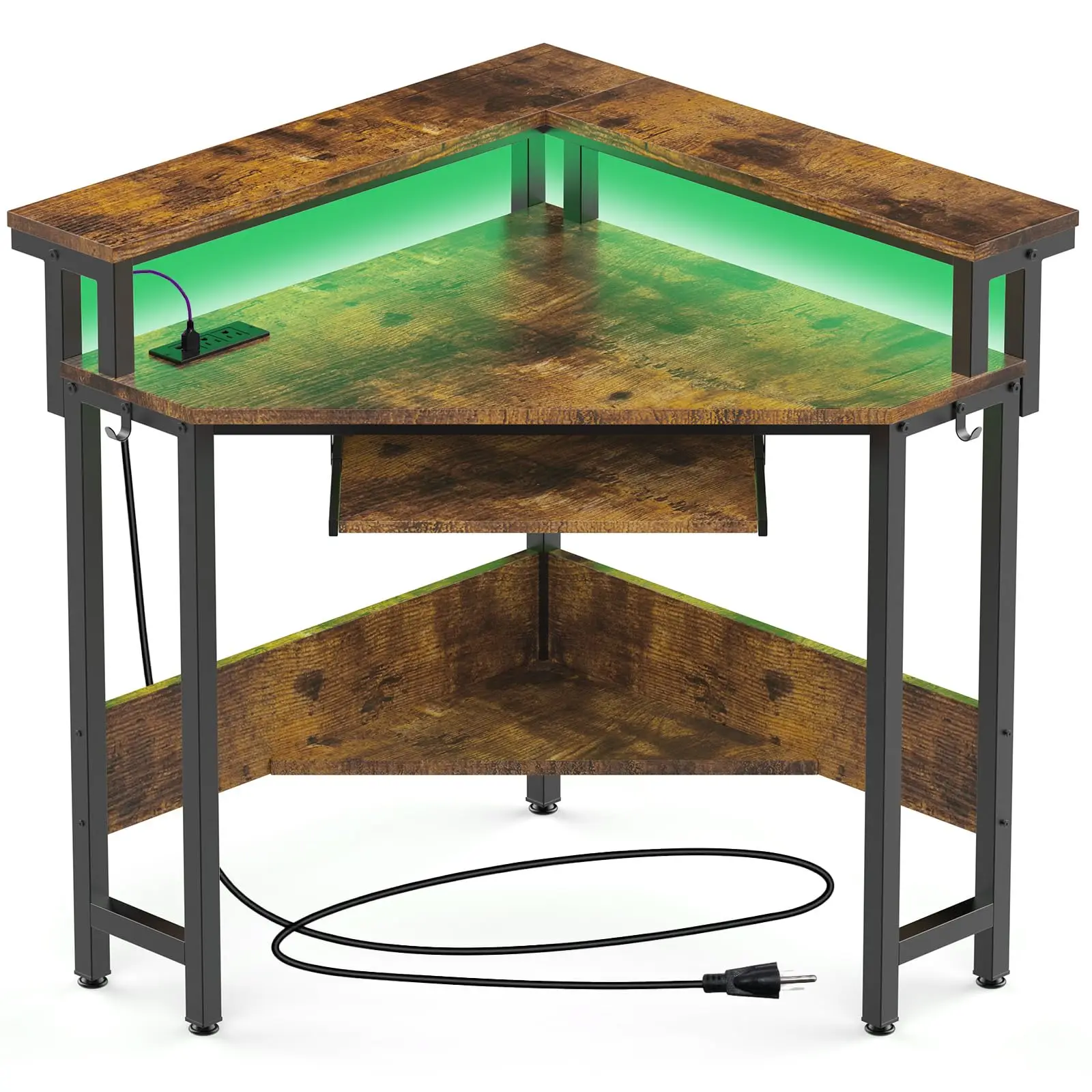 JHK Corner Desk Office Computer Desk for Small Space with LED Lights Gaming Table with Storage Shelves Power Outlets For Home