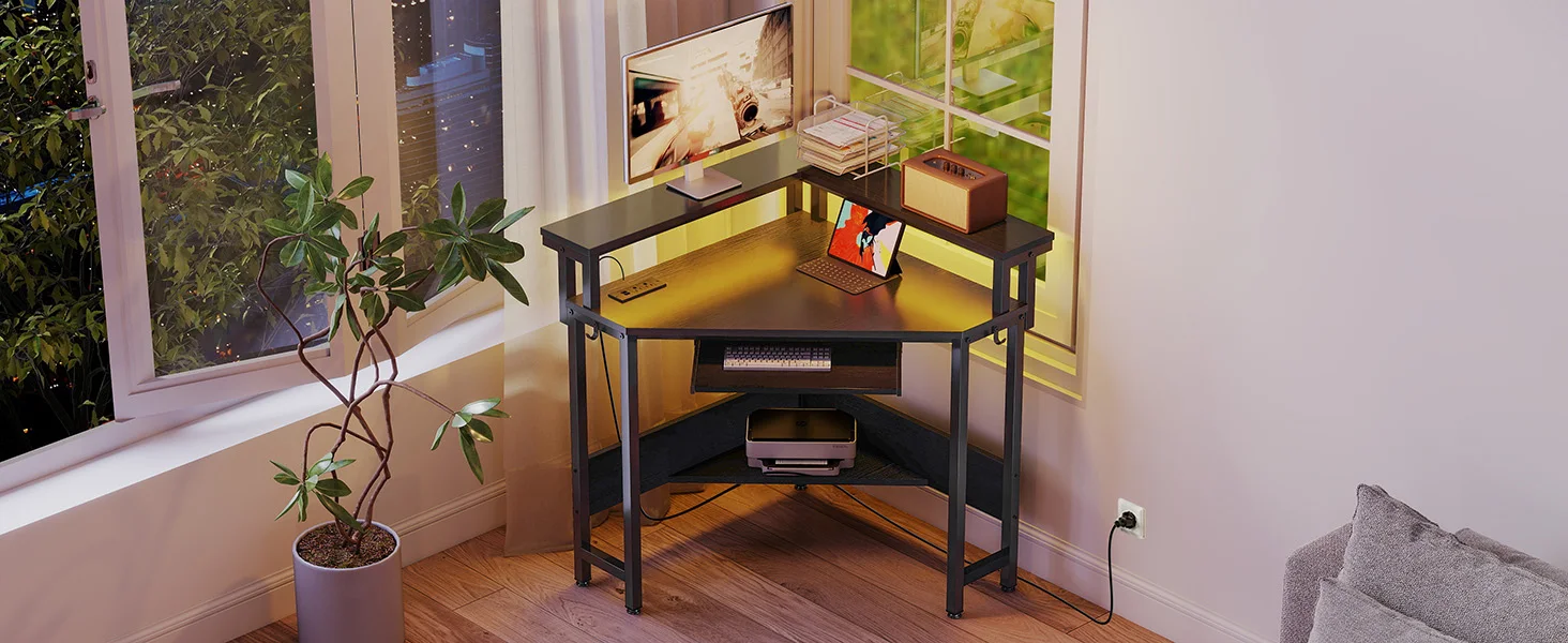 Space-Saving Corner Design: Maximize any room's corner! The smart 90-degree design fits snugly into unused space, making it a perfect, compact solution for small offices, dorms, or apartments. Built with sturdy MDF for lasting durability.