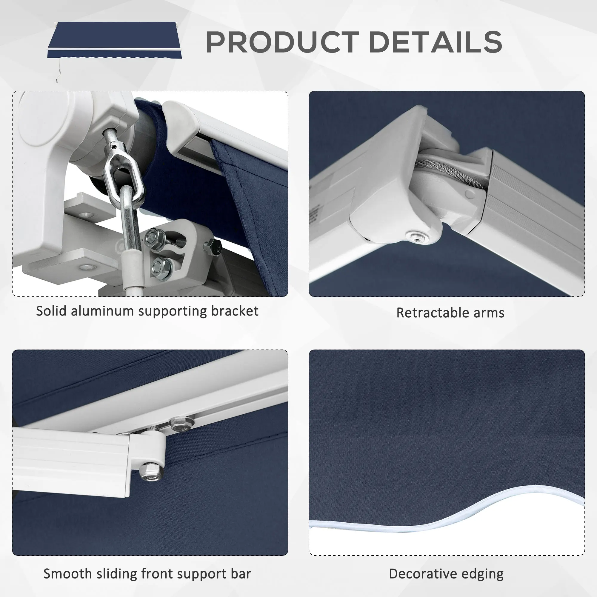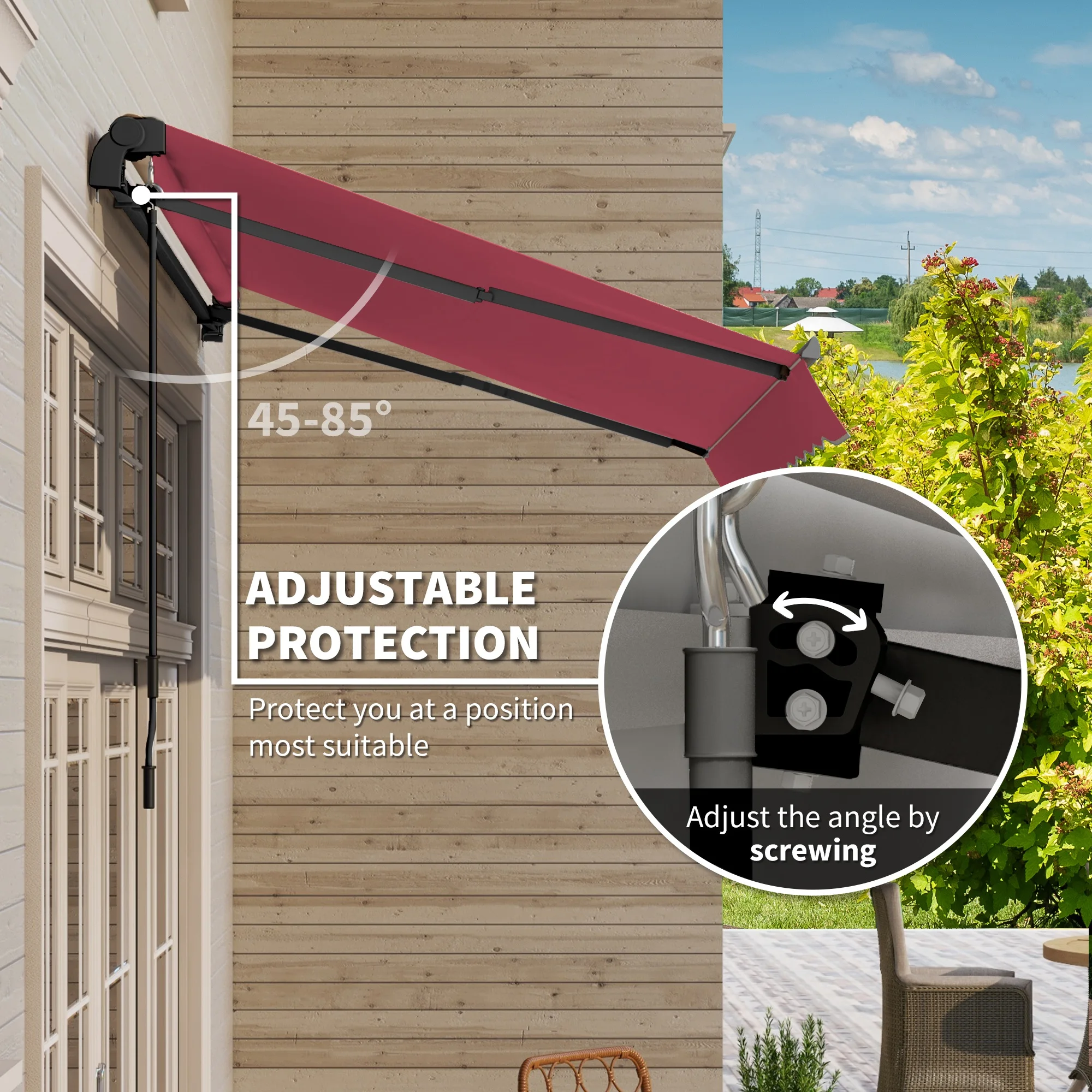 Outsunny 10' x 8' Retractable Awning, Patio Awnings, Sunshade Shelter w/ Manual Crank Handle, for Deck, Balcony, Yard