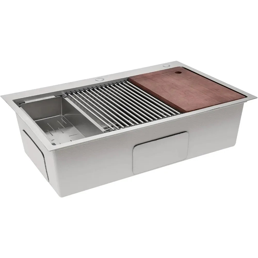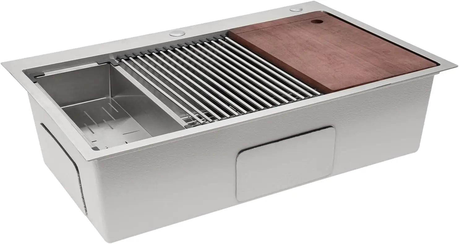 Stainless Steel Kitchen Sink, Built-in Sink 31 X 18 X 9 Inches Single Sink with Cutting Board, Holder and Strainer