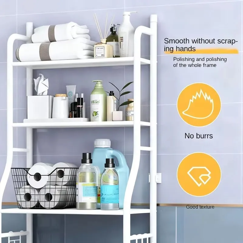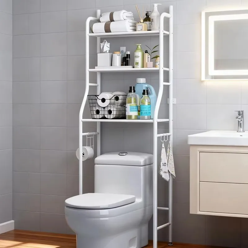 Storage rack above 3-layer toilet, space saving metal bathroom rack, independent toilet storage rack above, with 4 bathroom hook