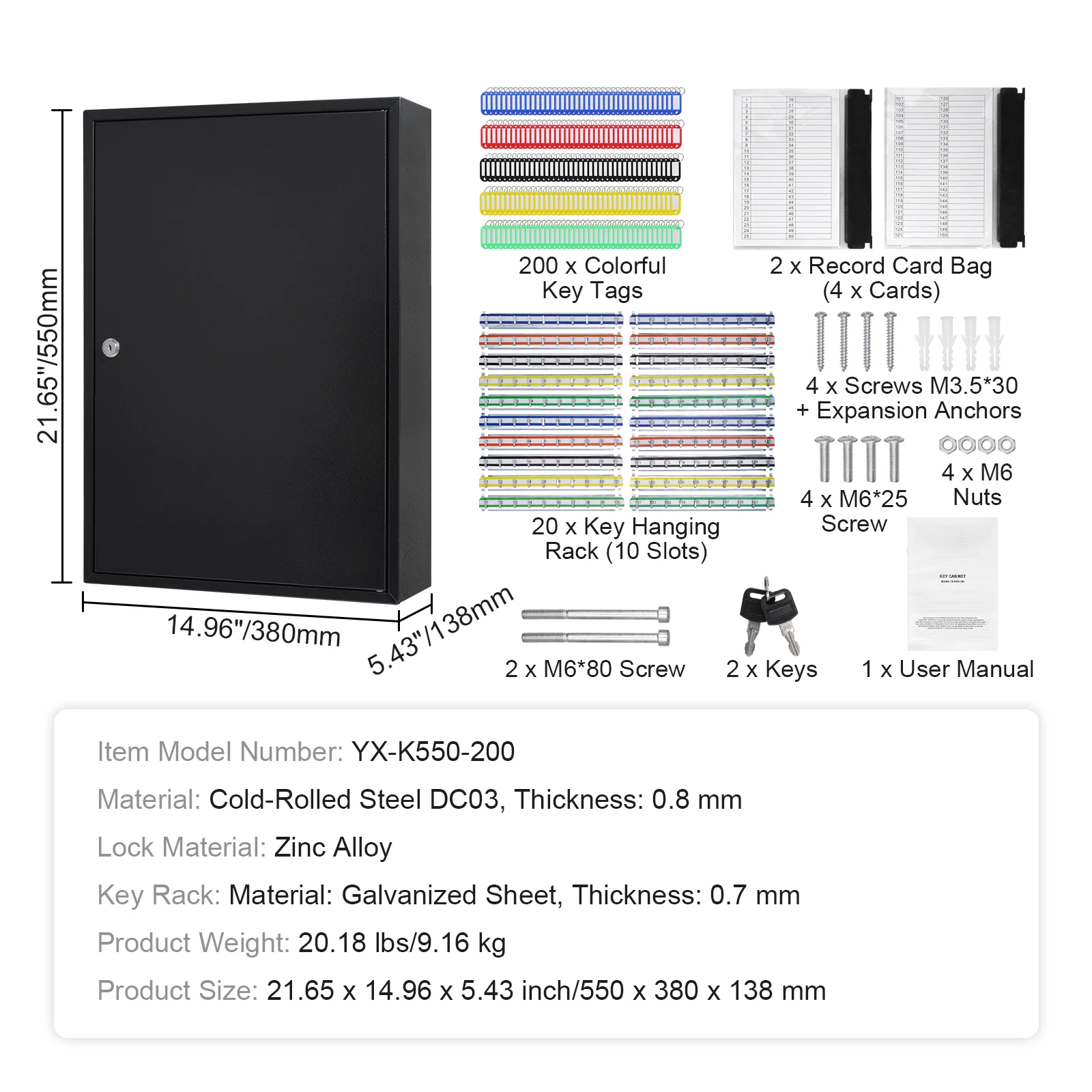 Use in Various Places: Equipped with key entry and exit record cards and 200 colorful key tags, it's easy to categorize and manage your keys. The record cards help you track key usage, providing insights into key activity.