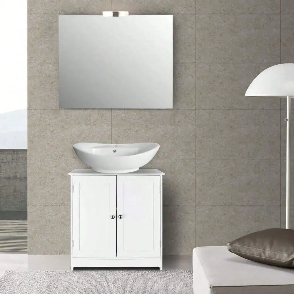 Welcome to our site! We are glad to give you a recommendation of this Storage Furniture Bathroom Sink Cabinet. This under sink cabinet not only looks good but would be a ideal space saving solution for you bathroom. It features two slatted doors with internal shelves, so you can store all your bathroom essentials in it and keep your bathroom neat and tidy. Moreover, it has a smooth white finish which will blend nicely with your modern or traditional decoration. So what are you waiting for? Just take it home!